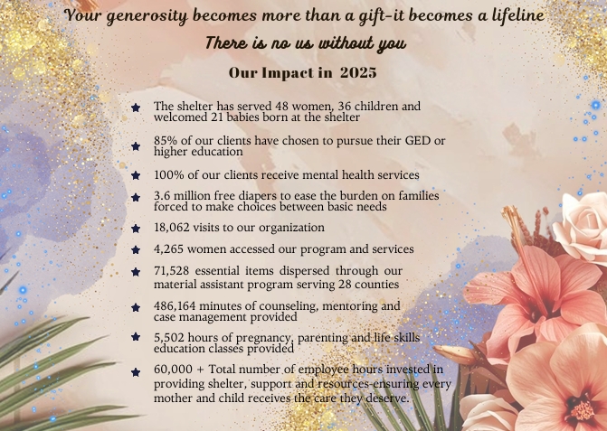 OLAMS is dedicated to providing comprehensive services to women and children. We offer compassionate support, critical resources and a path to stability. We believe that every mother deserves the dignity of a safe, nurturing environment---and we are committed to walking beside her every step of the way. Through our programs OLAMS offers essential support to those in need, helping mothers and children find safety, care and resources as they navigate the challenges of motherhood.